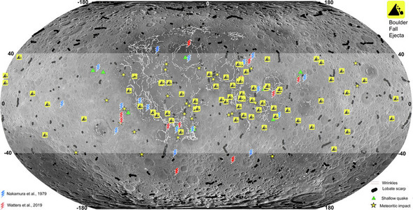 1972年のアポロ17号の着陸地点や地震活動に関連する地域の近くでも、一部の痕跡が発見された。これは、月の地震や衝突事象が岩の落下を誘発した可能性があることを示唆している。