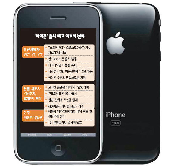 KTとSKTは最近既存データ通信料金制を変更し同じ値段ではるかに多量のデータ通信ができるようにした。SKTは月1万5000ウォンで42MBだったデータ使用量を500MBに12倍も増やした。iPhone発売を控えて起きている国内企業等のこういう変化は‘ガス抜き’の嫌いもあるが、消費者としては嬉しいことだ。移動通信社と端末機製造会社が主導してきた市場が、ソフトウェアを通じた利用者経験を重視し消費者中心に変わっていることを示している。