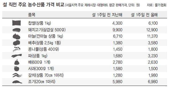 ←旧正月直前主要農水産物価格比較