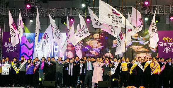 統合進歩党(共同代表 イ・ジョンヒ、ユ・シミン、シム・サンジョン)が5日党員7000人余りが参加した中で‘2012総選挙勝利前進大会’を開き、京畿道(キョンギド)高陽市(コヤンシ)、徳陽(トギャン)甲選挙区候補にシム・サンジョン共同代表を選出するなど本格的な総選挙体制に突入した。