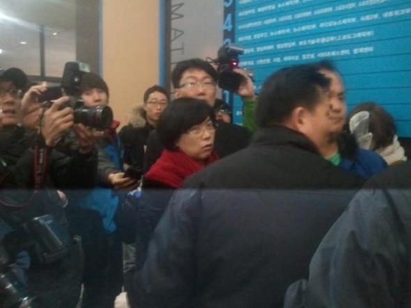 ←イ・ジョンヒ統合進歩党代表が6日午後2時頃、韓国放送新労組のストライキ出征式に参加しようとしたが使用側職員の制止を受けている。(出処.@kbsunion)