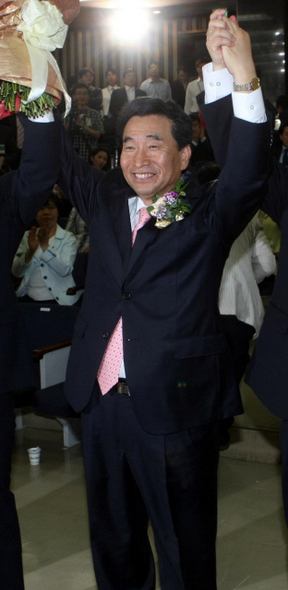 ←新任民主党院内代表に選出されたイ・ガンネ議員.