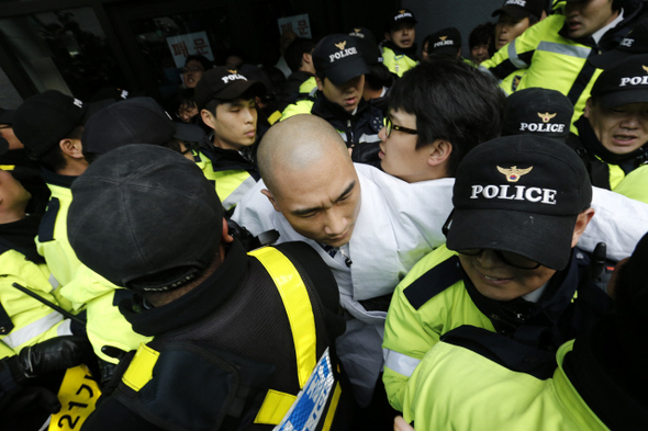 警察が約6500人を投じて13年ぶりに行おうとした曹渓(チョゲ)寺への突入作戦が、曹渓宗総務院長の慈乗僧侶の仲裁でかろうじて延期された。 慈乗僧侶は逮捕状が発給されたハン・サンギュン全国民主労働組合総連盟(民主労総)委員長の退去に関連し、「明日正午までに解決する」と明らかにした。