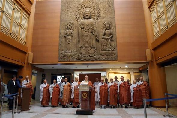 警察が韓国仏教界の総本山であるソウル鍾路(チョンノ)区堅志(キョンジ)洞の曹渓寺に避身中のハン委員長に対する逮捕状執行に踏み出した9日午後5時、大韓仏教曹渓宗総務院長の慈乗僧侶は、緊急記者会見を行い「明日正午までにハン委員長の退去有無問題を解決するので、警察と民主労総はすべての行動を中断し曹渓宗を見守ってほしい」と訴えた。 慈乗僧侶は「ハン委員長が曹渓寺に身を避けた後(曹渓宗は)相生の原則を持って対話で問題を解決するために不断に努力してきた」として「逮捕状を執行することは葛藤を解消することではなく、新たな葛藤を引き起こす。 これ以上の軋轢は望ましくない」と仲裁の理由を明らかにした。