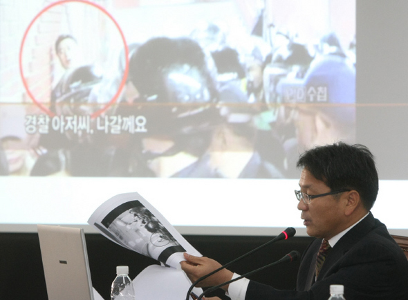 “車道にはいません。歩道にいますが、歩道にいるのも検挙しましょうか?”(ソウル庁2機動隊長) “罪証すれば白黒つけるんだ,では検挙しろ”(チャン・ジョンベ ソウル庁機動本部長)
