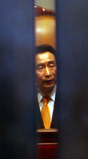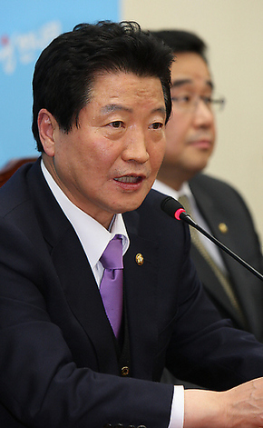 ←イ・ガンレ民主党院内代表が28日午後、国会予算決算委会議場で非公開で開かれた議員総会でハンナラ党と合意した‘ツートラック’協議案を説明している。 キム・ポンギュ記者bong9@hani.co.kr
