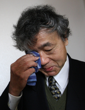 ←‘民青学連’の背後人物と仕立て上げられ懲役20年を宣告され再審を請求した日本<日刊ゲンダイ>記者の太刀川正樹が27日午前、ソウル,瑞草洞,ソウル中央地裁で無罪を宣告された後、目がしらを押さえている。 シン・ソヨン記者viator@hani.co.kr