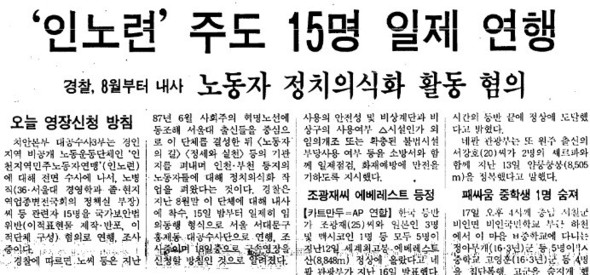 キム治安監が合流した1989年当時、対共捜査部は1987年のパク・ジョンチョル拷問致死事件の影響で捜査が停滞していた時期だった。そのような中、当時「キム・スンホ警長」が属していた対共捜査3部は1989年10月18日、仁川地域民主労働者連盟(仁民労連)に対する全面捜査を開始した。仁民労連は1987年6月に結成。キム治安監が所属していた仁労会は思想路線の違いがもとで仁民労連から分裂し、1988年2月に結成されたグループだ。当時の報道によれば、対共捜査3部はキム治安監が公式採用された同年8月末から仁民労連に対する内偵に着手し、10月15日から関連者たちの連行を開始。10月19日には、仁民労連中央常任委員会のオ・ドンニョル委員長をはじめ15人が国家保安法違反で拘束されている。