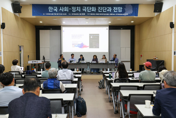 ハンギョレ経済社会研究院などが主催したフォーラム「韓国社会・政治の極端化をめぐる診断と展望」が6月27日午後、ソウル麻浦区孔徳洞のハンギョレ新聞社3階の青巌ホールで開かれ、登壇者たちが討論を行っている=キム・ヨンウォン記者//ハンギョレ新聞社