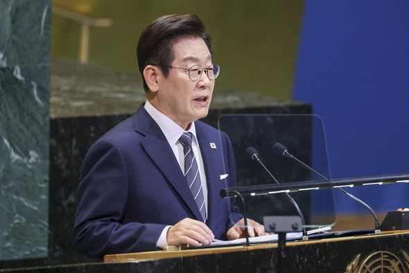 23日(現地時間)、就任後初めて米ニューヨークの国連の舞台に立った李大統領は「『END』を中心とした包括的対話によって、朝鮮半島で敵対と対決の時代を終結(END)し、平和共存と共同成長の新時代を開いていかなければならない」と述べた。李大統領は「大韓民国政府は、相手の体制を尊重し、いかなる形の吸収統一も追求せず、一切の敵対行為をする意思がないことを改めて明確にする」とし、「この3つの原則に基づき、まず南北間の不必要な軍事的緊張と敵対行為の悪循環を断ち切りたい」と述べた。