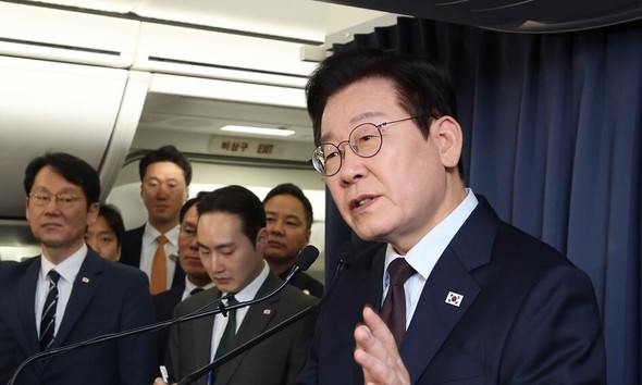 李在明(イ・ジェミョン)大統領は23日(現地時間)、南アフリカ共和国からトルコの首都アンカラに向かう大統領専用機の機内で、南北関係の現状について、いつにも増して深い絶望と危機感を示した。李大統領は「右手で戦いながら左手で握手するのが世の中の道理だが、南北は完全に断絶している。いつ偶発的な衝突が起こるか分からない状況にまで至っている」と述べた。その過程で「いつ亡くなるか分からない90歳を超える非転向長期囚を送り返すという努力にさえ、反応がない」とも述べた。市民社会団体が送還を推進中の非転向長期囚アン・ハクソプさん(95)の問題に言及したものとみられる。