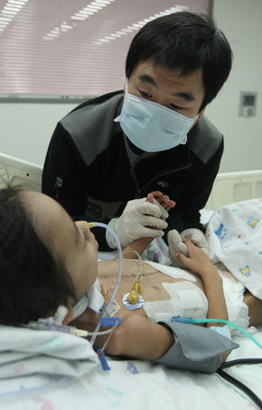 去る14日午後3時30分、ソウル大病院子供病院集中治療室。希少難病である拡張型心筋症を病んでいるヒョンビン(5・仮名)がパパの声を追い瞳を動かした。マスクを着けたヒョンビンがパパのイム・ソクジン(40・仮名)氏が滅菌手袋をはめた手で息子のやせこけた腕を揉んでいる。父と息子がしばらく見つめ合った。