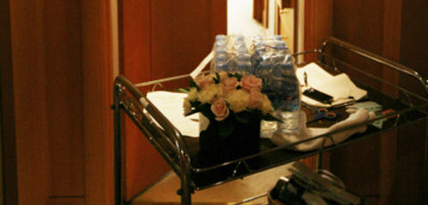 ←インドネシア大統領特使団が滞在中に国家情報院職員らが侵入したソウル、中区、小公洞のロッテホテル1961号室。22日午後、ホテル職員らが清掃をするためにドアが開いている。キム・ミョンジン記者 littleprince@hani.co.kr