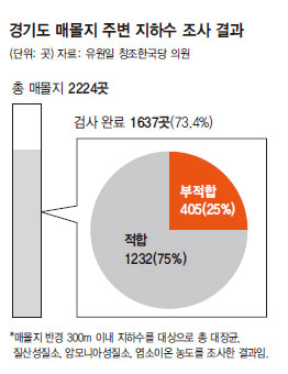 京畿道内の口蹄疫埋却地周辺の地下水4ヶ所中1ヶ所の水質がすでに飲用に適合しない水であることが分かった。