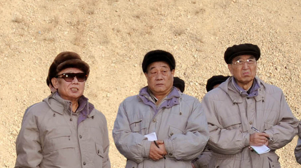 ←咸鏡北道(ハムギョンブクド)鉱山を訪ねたキム・ジョンイル委員長。キム・ジョンイル北朝鮮国防委員長が咸鏡北道,ムサン鉱山連合企業所を訪問し話している。 <朝鮮中央通信>は24日この写真を報道し写真撮影日を明らかにしなかった。 聯合ニュース