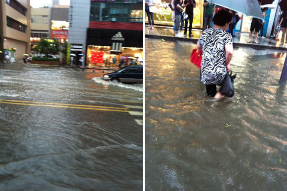 特に首都圏で100mm以上の集中豪雨が記録されたこの日午後、ツイッターでは江南駅、江南免許試験場、弘大、京畿道安山など首都圏一部地域に膝の高さまで水に浸った被害場面がリアルタイムで伝播されたにも関わらずソウル市は「大きな被害はない」と明らかにし、安易な浸水対策ではないかという批判が提起されている。