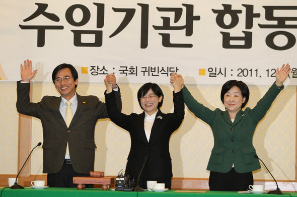 民主労働党と国民参与党、新しい進歩統合連帯が5日、受任機関合同会議を開き3者合党を公式決議し‘統合進歩党’(略称 進歩党)という名前で新たにスタートした。