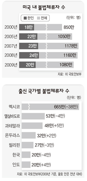 米国国土安保部統計によれば、昨年米国の不法滞留者は計1080万人だ。この内、韓国人不法滞留者も20万人に及ぶ。不法滞留者には社会保障番号が発給されず、就職はもちろん運転免許も取れず、いつ取り締まりにかかるかと気をもまなければならないなど正常な生活は不可能だ。医療保険がないことはもちろんだ。取り締まりにかかり家族が生き別れとなる場合も珍しくない。米国で不法滞留者の両親の下で生まれた子供たちが両親の追放により他人の手にまかせたり、両親とともに米国に来た未成年者たちは一緒に不法滞留者となり大学進学ができずに挫折するなど問題は大人たちだけに止まらない。