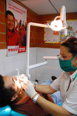 ←カラカス市内のベネズエラ国営石油会社(PDVSA)建物を改造したポリバラーナ大学校で会ったチャニナ サバルセス(35)は 「高等学校卒業後17年ぶりに夢にも思わなかった大学という所で法学を勉強しながら弁護士として仕事をしようと考えている」と話した。診療・教育・育児施設と協同組合が全てそろった発展センターでも「五十才を過ぎて文を習った」「やっと生計を立てることができるようになった」という絶賛があふれた。