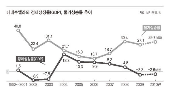 カラカスはちょうど公務員たちが17万9000tの食料品を引き出し公金を横領した事件で沸きかえっていた。‘よりによって’、貧民村に家庭用ガストンを無料で配るという所を訪問した時は "ガスありません" と書いてあり、食料品割引スーパー メルカルは "内部修理" で閉まっていた。2006年に13.7%だった物価上昇率は今年29.7%と予想されている。2008年一時、バレル当たり140ドルを越えた国際原油価格が70ドル台に下がり福祉予算の縮小も避けられない。