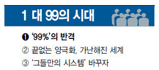 まず一つの主題を巡り市民のデモが流行病のように全世界へ急速に拡張される様相は歴史上今回がほとんど初めてだ。 世界化の影響でそれだけ世界が狭くなったためでもあるが‘1% 対 99%’という貧富格差の深化に対する共感と怒りが全世界的現象であることを反映している。
