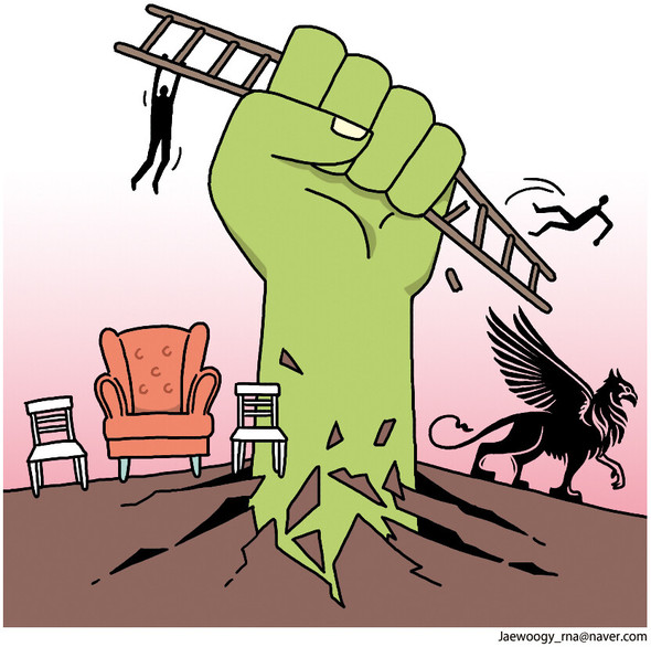 先月訪韓した世界的な政治哲学者でハーバード大学教授のマイケル・サンデルは、李在明(イ・ジェミョン)大統領と対面し、自著『実力も運のうち 能力主義は正義か?』を贈った。この本の原題は「能力主義の暴政」だ。能力主義は、頑張れば誰もが成功でき、能力のある者がより多くの補償を受け取ることこそ公正だという考えにもとづいている。世襲や血縁が中心の社会を克服することを目指す進歩的な理想として登場したものの、今日では不平等を正当化する体制として批判される。